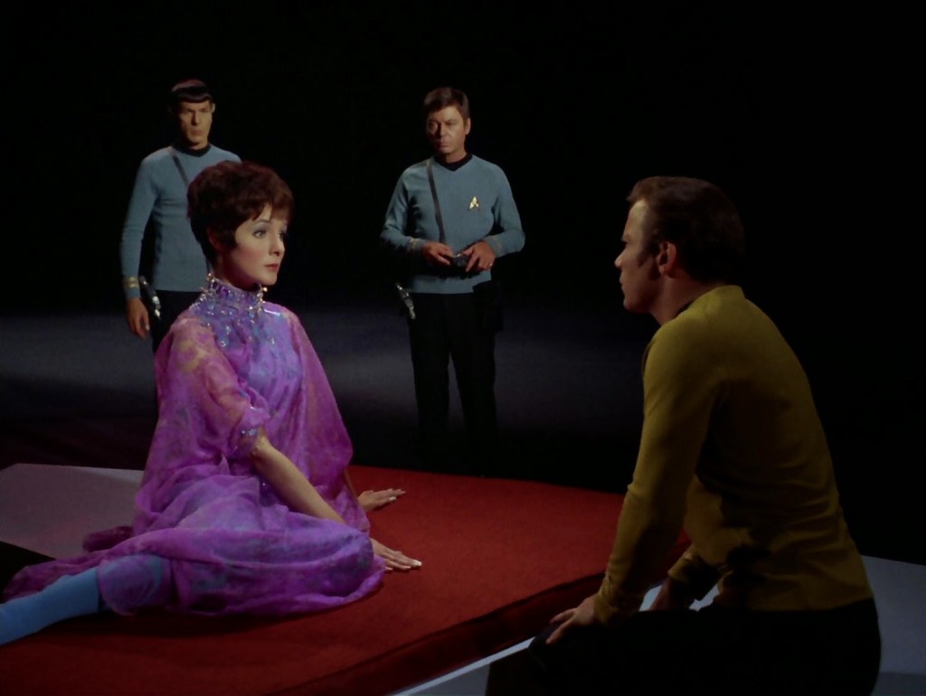 It’s also interesting that McCoy refuses treatment, because absorbing so much of the empathetic healing powers would kill Gem, and he is bound by an oath to preserve life even at the cost of his own. The weird alien scientists still refuse to stop the test, even though Gem has proven that she was willing to sacrifice herself. Jim accuses them of being ‘nothing but intellect’ and that compassion doesn’t exist in them. They are just cruelly letting an experiment run for no reason. They agree (apparently?) and float off with Gem in the end. McCoy says it was good old fashion human emotion that won them over eventually, despite their cold, hard logic and calculating demeanor.